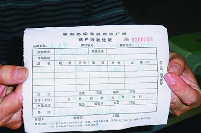 纪女士在购买沙发时展示了收款凭证