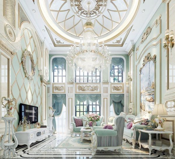 整个空间以三面落地窗环抱,与室外景致无缝相接。实用性之上兼具美观,餐厅是家居生活的心脏。完全开放式的客厅餐厅,使得空间通透舒展。色彩上延用客厅的搭配形式,法式园...