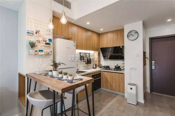 入户就是开放空间的格局,设计师在橱柜和入户门之间做个一个到顶