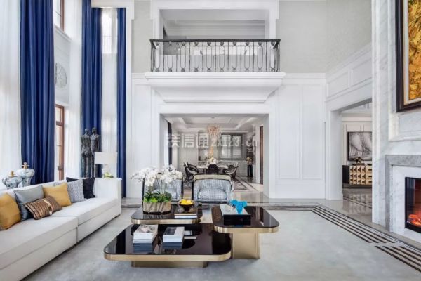 步入客厅,大的挑空空间,家具以围合的形式相聚,意为圆满、方正